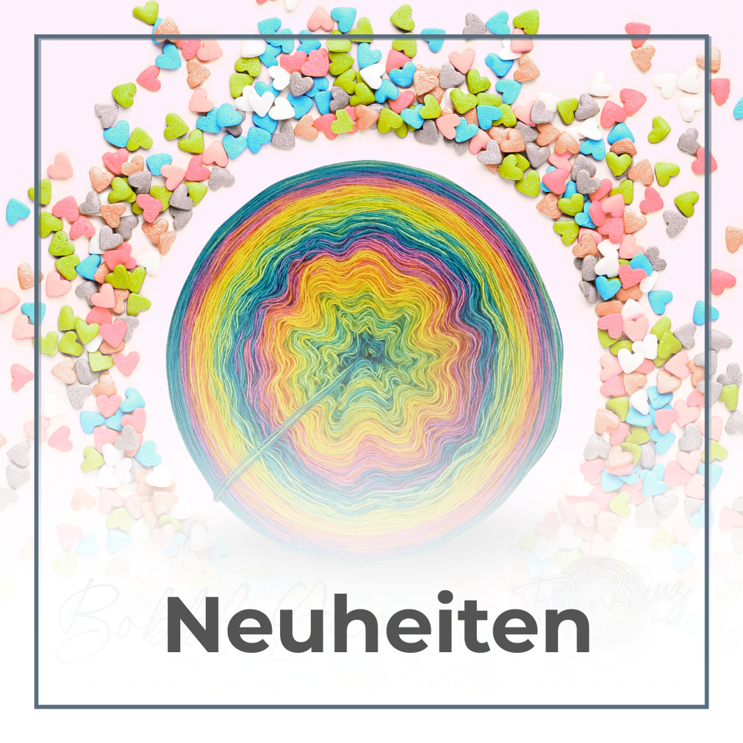 Er ist 2 fädig und hat dazu zwei durchlaufende Fäden (Schwarz & Anthrazit), also 4 Stränge, wenn man so will. Der Farbenrausch ist etwas ganz besonderes, er hat nämlich, als derzeit einziger bei uns im Sortiment, 25! Farben. Rudolf findet ihn am schönsten von allen und hat ihn deshalb als Titelbobbel ausgewählt. Projekte mit dem Farbenrausch werden auch etwas ganz ganz Besonderes. Mit Liebe gemacht, mit Liebe verarbeitet, mit Freude getragen...
