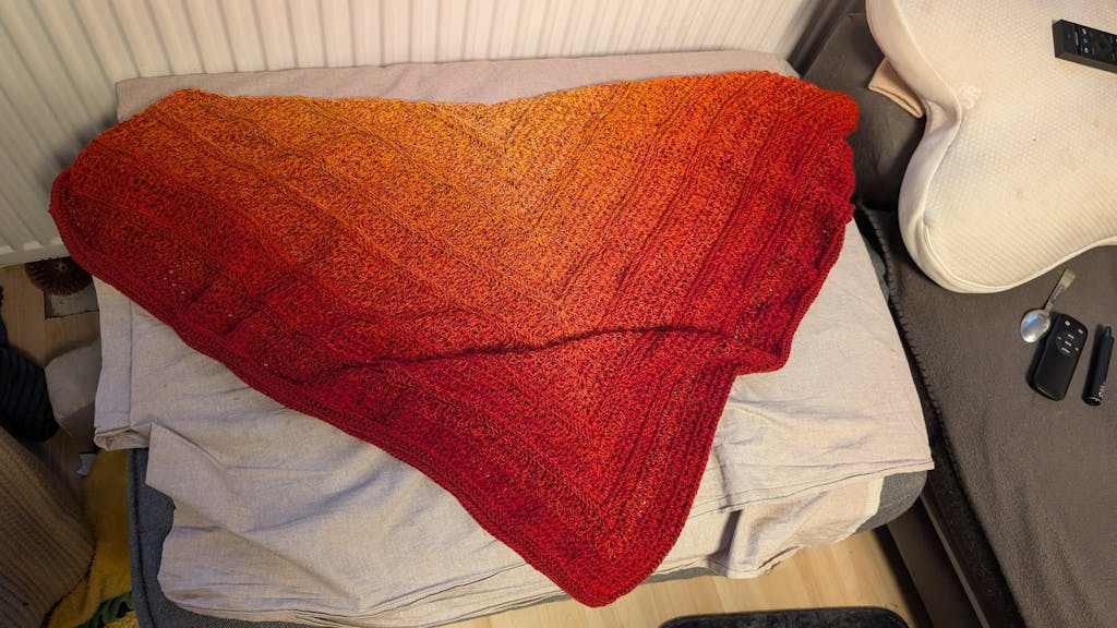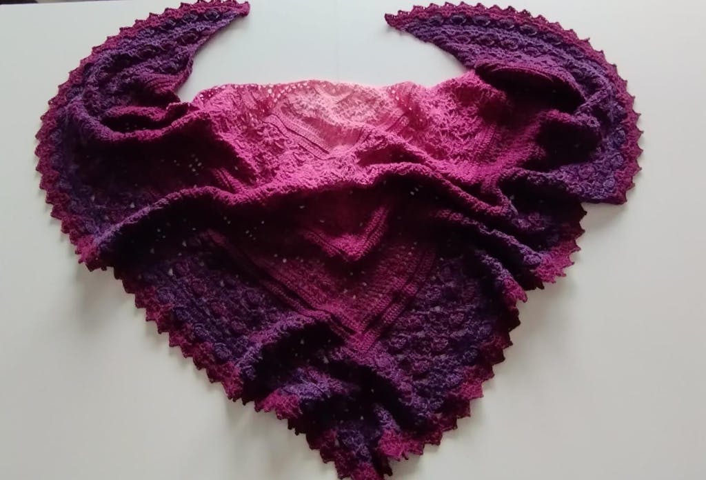 Der Farbverlauf ist fantastisch und die Wolle lässt sich sehr gut häkeln. Sie fühlt sich super an. Ich habe ein Dreiecktuch daraus gehäkelt und es ist mein Lieblingstuch geworden.