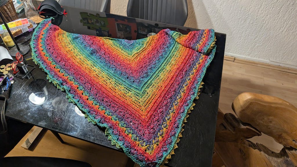 Super schöne Farben bin zwar kein Pink Fan aber das Tuch wächst und die Farbe gefällt mir auch jeden Tag mehr.